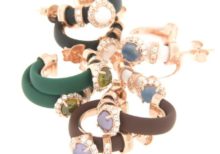 | Orecchini in argento tit. 925m in caucciù con fiorellino contornato da zirconi e pietra colorata centrale. |