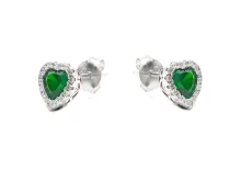 | Orecchini in argento con zirconi rossi e bianchi – Rodiato | Bracciale Elastico con pasta di turchese, pietra di luna bianca, ematite | Pendente in malachite e corno di corallo – Dorato | Orecchini in argento con zirconi verdi a cuore e bianchi – Rodiato |