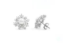 | Orecchini in argento con zirconi bianchi e perla – Rodiato | Orecchini in argento con zirconi azzurri e bianchi – Rodiato | |