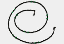 | - Laccio per occhiali con agata nera sfaccettata di 4mm e rondelle di giada verde di 6mm. Dimensione: 68cm