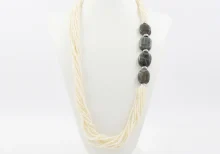 Titolo | Collana con acquamarina, perla, ematite, cammeo in chiusura in argento – Rose’ | Collana con rubellite, diaspro, quarzo rosa, perla, chiusura in argento – Rosè | Collana Multifilo con granato verde, giada, corallo rosso, chiusura in argento – Dorato | Collana Multifilo con agata nera, quarzo fragola, chiusura in argento – Rosè | Collana Multifilo con torchon di microperle, labradorite e chiusura in argento 925‰ | Collana Multifilo con diaspro imperiale, corallo fossile, ambra e chiusura in argento 925‰ – Dorato | Collana con giada canadese, corallo, ambra, chiusura in argento – Dorato | Collana Multifilo a torchon con quarzo fumè, gocce di agata rossa e cristallo di rocca e chiusura in agata rossa | Collana con acquamarina, perla, ematite, chiusura in argento – Rose’ |